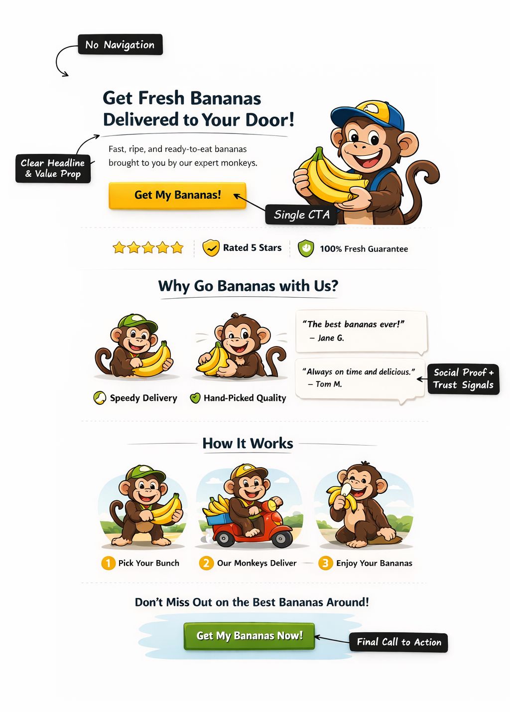 4 sources highlight messaging and flow nuances (e.g., hierarchy, copy matching ads) more than basic anatomy. Keeping the message consistent across creatives and landing pages is what separates a strong campaign from a disgruntled one.